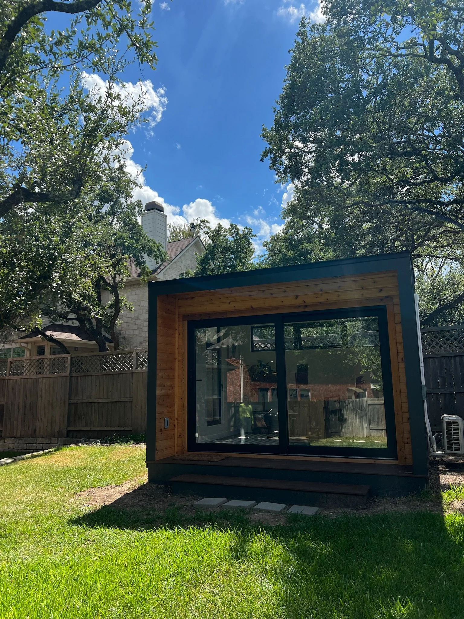 "We could not be happier with our backyard pod. The entire team from start to finish was great to work with and always accomodating to all our questions along the way. They are highly customizable so you can have it fit your backyard space how you'd like. After working remote in my pod for the past couple of months some key things really stand out: 1) sound proofing is better than our house 2) the space feels so much bigger due to all the natural light 3) the hi-tech door lock and smart lights are great." - Emma